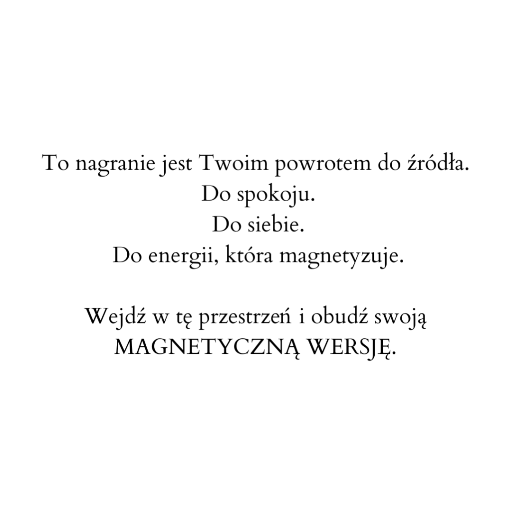 To nagranie pomoże Ci rozbudzić swój magnetyzm i naturalną moc, abyś mogła pewnie sięgać po pragnienia serca i żyć w harmonii z własną esencją.